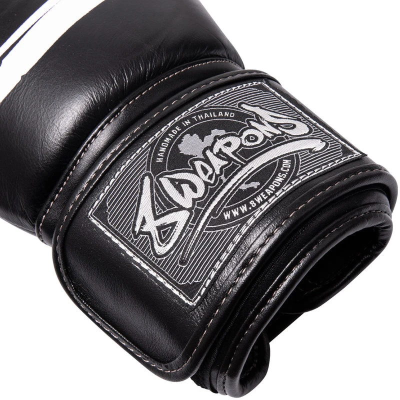 De 8 WEAPONS Big 8 Bokshandschoenen zijn “Handmade in Thailand” premium handschoenen. Dik rundleer en stevige naden maken deze bokshandschoen een constante metgezel in je trainingstas. Gemaakt in een fabriek waar al eeuwenlang bokshandschoenen worden gemaakt voor de grootste stadions in Thailand. De vulling is aangepast om je een comfortabele feedback te geven tijdens het stoten. Een van de optische hoogtepunten van deze handschoenen is de logopatch en de hoogwaardige afwerking.