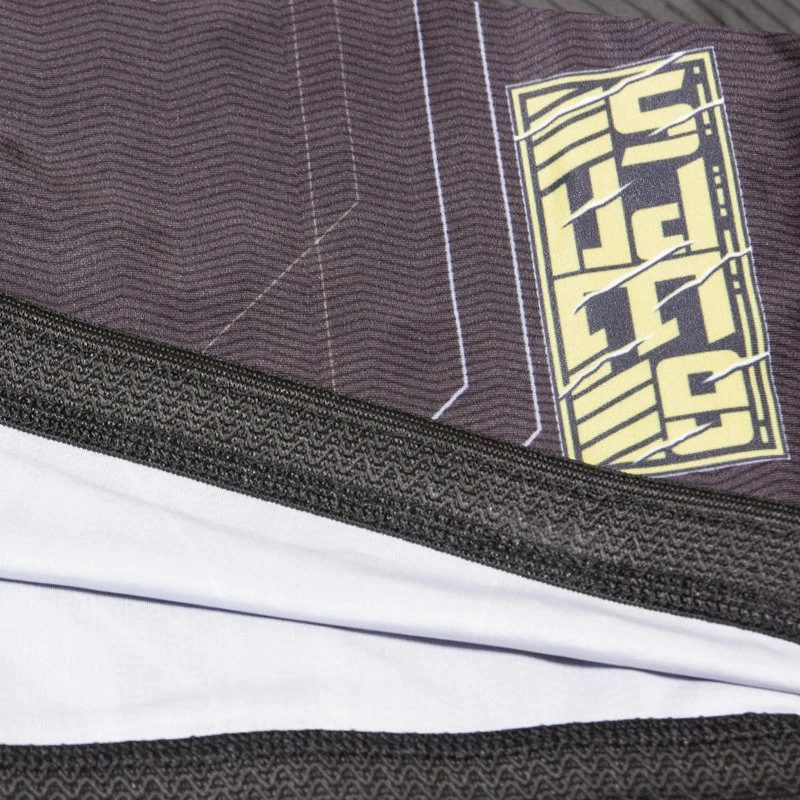 Door de sublimatie-print zien de kleuren er bijzonder echt uit. Voor optimale grip vertrouwen we op Grip-technologie. Hier is een siliconen versteviging bevestigd aan de onderste tailleband. De rash guard blijft op zijn plaats – uitglijden is praktisch onmogelijk.