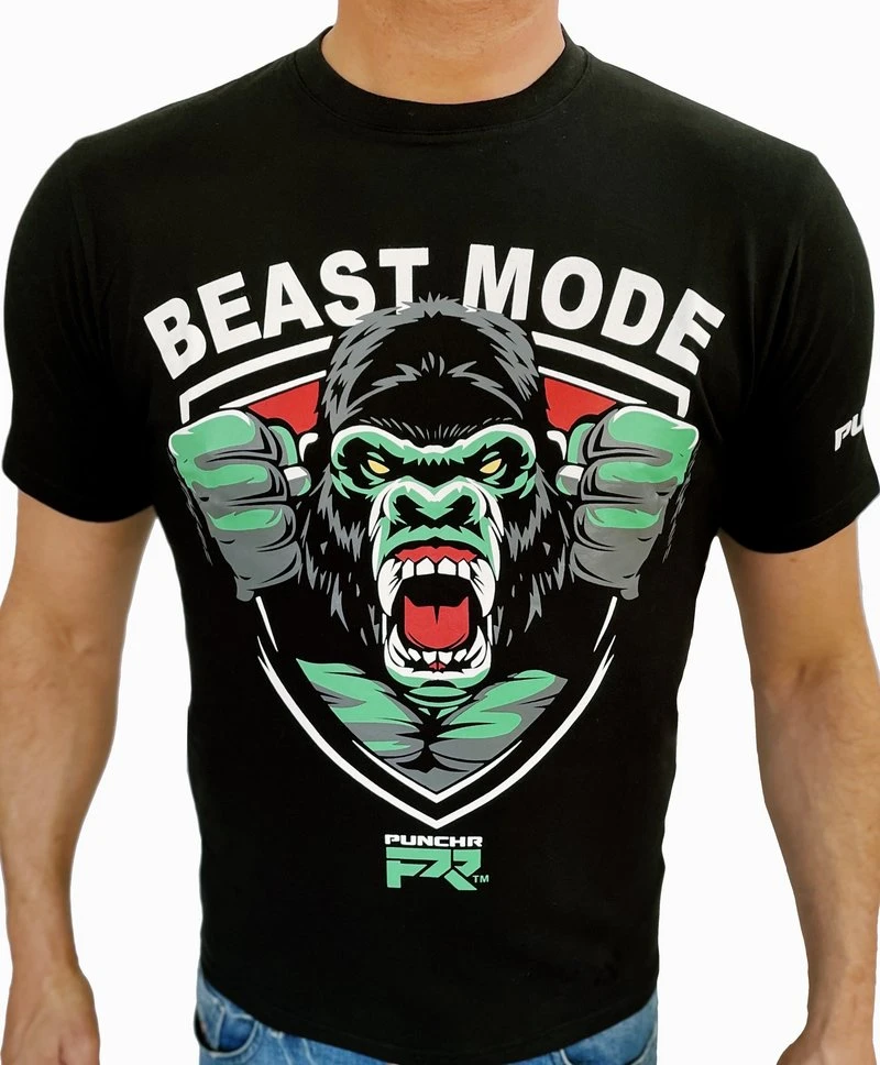 PunchRâ„¢ Beast Mode T-shirt Zwart Wit Groen.