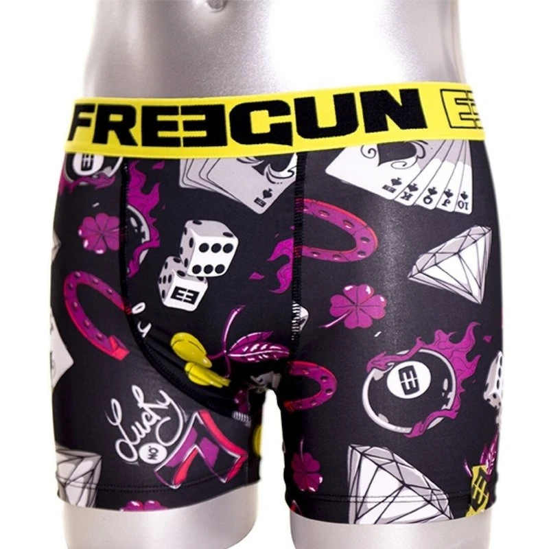 FreeGun Polyester Boxershorts Underwear Lucky Geel Zwart.