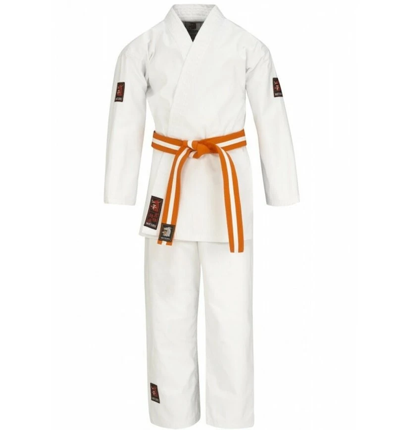 Het Matsuru (Karate) beginners-pak voor de kids/jeugd, gemaakt van 65% polyester en 35% katoen en voorzien van embleem op de mouwen.