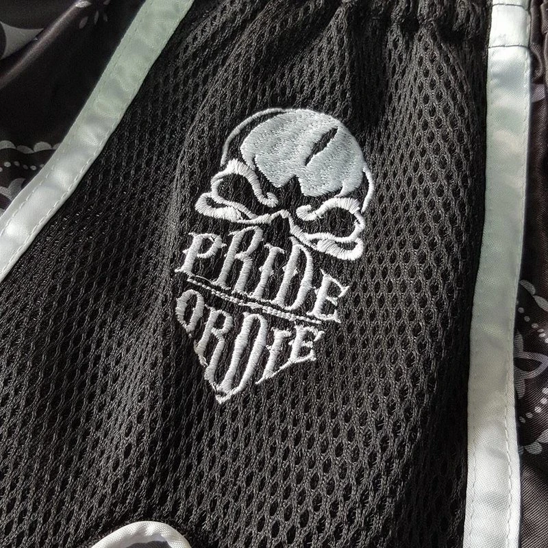 Pride or Die Muay Thai Shorts RISE Zwart Wit.