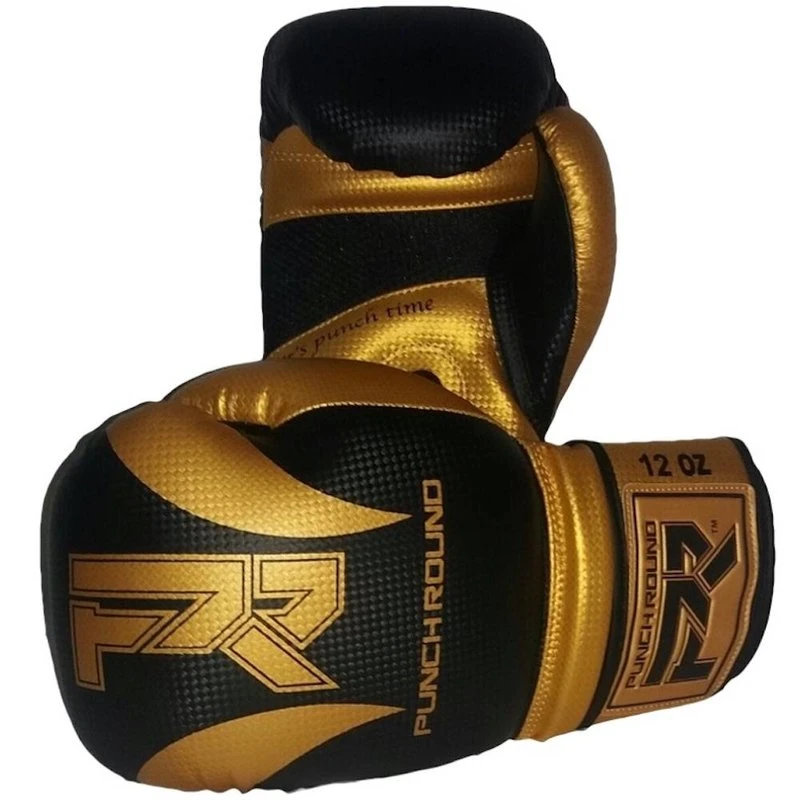 Punch Round Bokshandschoenen “SLAM” Mat Carbon Zwart Goud.