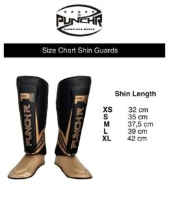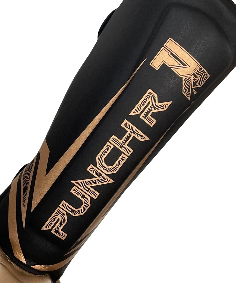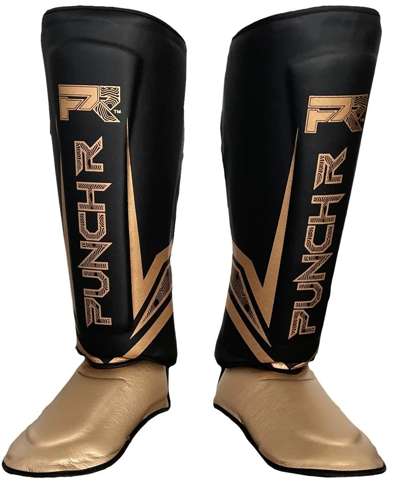 PunchRâ„¢ Electric Kickboks Muay Thai Scheenbeschermers Zwart Goud Microfiber.