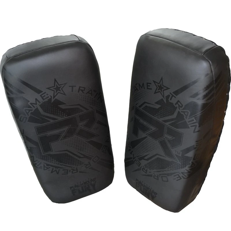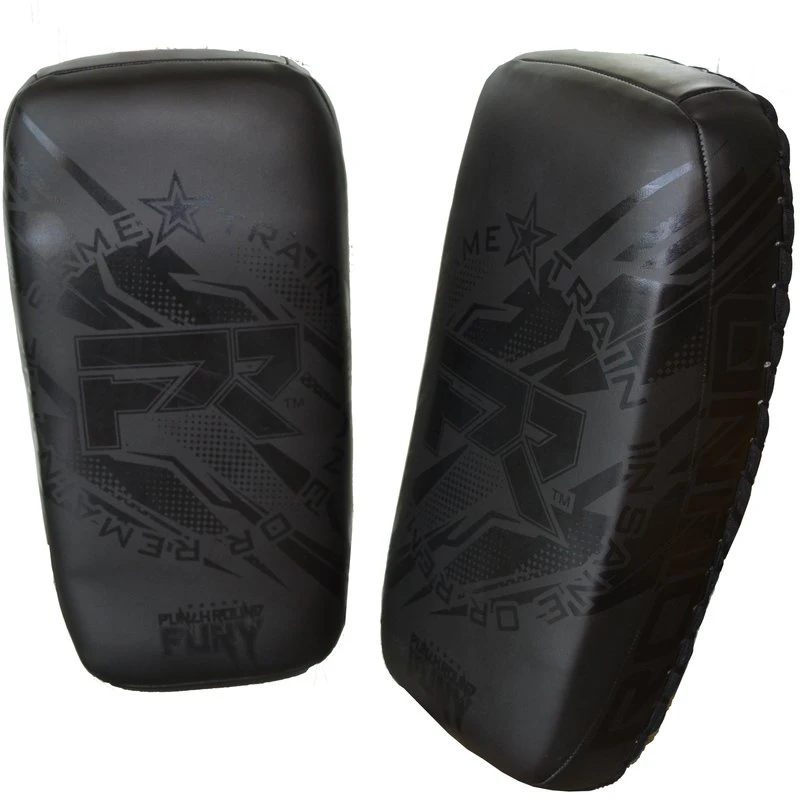 PunchR™ Train Insane Curved Thai Pads Arm Kick Pads NT Zwart op Zwart.