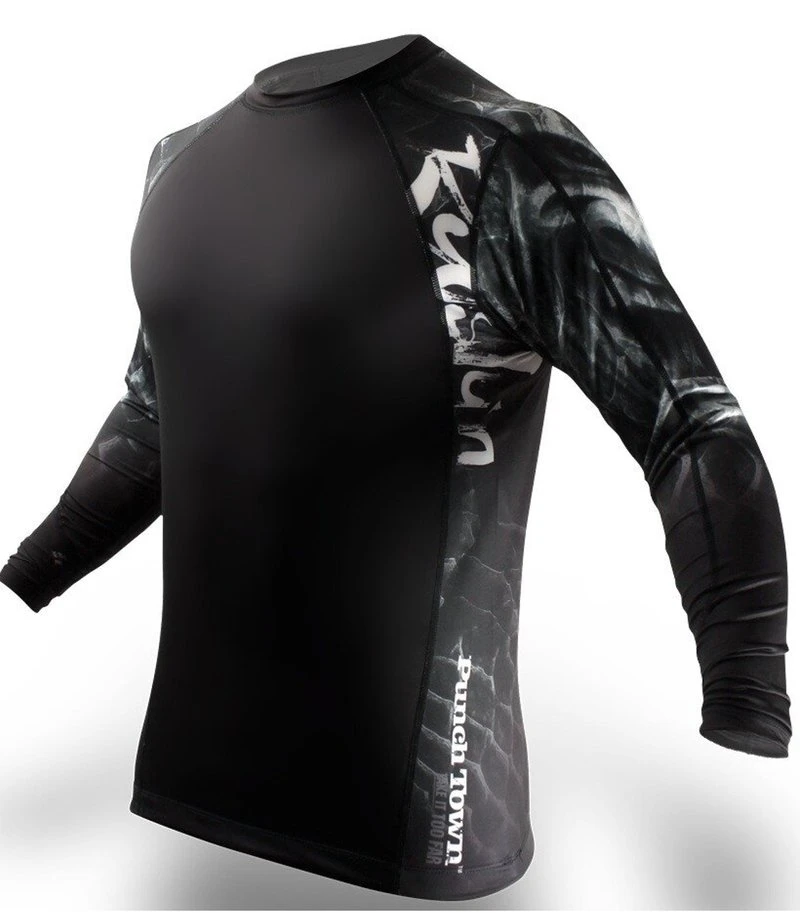 Unieke met gas doordrenkte ontwerpen zetten de toon voor deze opmerkelijke rash guards. Met flat-lock naden voor ultiem comfort, de fijnste antibacteriële stretch stof en een unieke siliconen grip rond de taille die oprijden voorkomt, hebben deze rash guards van PunchTown een enorme stijl, met nog meer substantie.