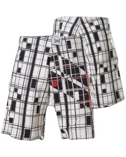 Een groot geruit all-over dessin siert beide kanten van de broek. Een achterzak aan de rechter achterkant biedt opbergruimte. Deze broek is in een gemakkelijke stijl gesneden. De taille kan worden aangepast via een intern trekkoord.