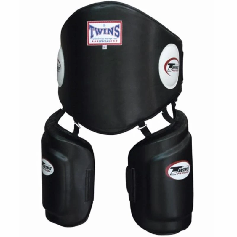 Twins BPLK Buikbescherming en beenbescherming zijn ideaal voor training: lage schoppen, push-kicks, knie-slagen en algehele clinch-training; het kan worden gebruikt in combinatie met Thai Pads / Handpads en trapkussens.