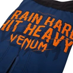 Venum Fightshorts Train Hard Hit Heavy Blauw Oranje.
