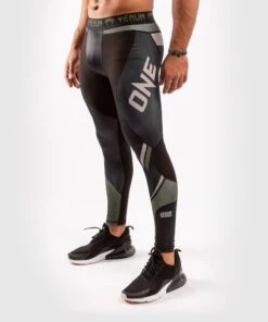 Venum ONE FC Impact Compression Tights Legging Kaki Zwart.